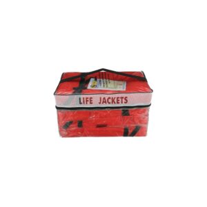 UV resistant marine grade vinyl carry bag. Contains (4) adult sized Universal Life Vests (Type II PFD).