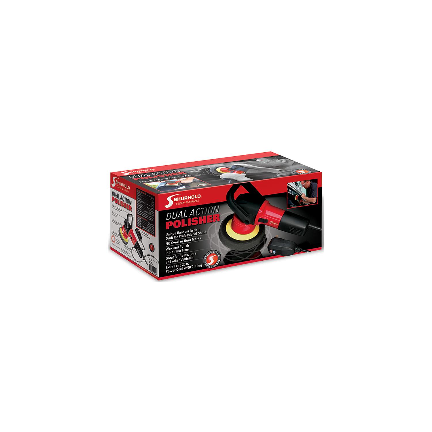 Shurhold’s Dual Action Polisher allows the everyday person the ability to buff, wax, and polish their boat, car or RV like a professional. The unique dual action oscillating head prevents burn and swirl marks. General detail maintenance like waxing can now be done in half the time. Also features quick change pads with Velcro backing, and a 20′ power cord with GFCI (ground fault circuit interrupter) plug. Packed in an individual box and includes:• Polisher• Velcro backed backing plate• A canvas carry bag• Two handle options• A wrench• InstructionsIn addition the Starter Kit also includes:• 16 oz. Pro Polish Wax• Pro Polish Black Foam Pad• One Microfiber towel